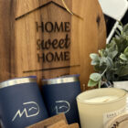 - Personalized Acacia Board: A beautiful, durable wood cutting/serving board engraved with “Home Sweet Home.” or your client’s name and your branding at the back.